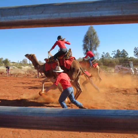 Today we walked around the Olgas it was down hill for the first little bit. It was Very rocky you had to be vary careful where you step. There was a very steep, big rock that you had to climb/walk up. Then there was another hill to go up. When you get to the top there is another longer walk that you can go on but we didn’t go on that one. It looked really steep from where we were but when you go a bit to the edge it wasn’t as bad but it was still very steep. We then went back. It was a bit hard to go down the big steep rock. I went down it twice. The Olgas are known as Kata Tjuta and are made up of sandstone conglomerate rocks unlike uluru being a monolith – one rock. We then went to the first ever camel races in Yulara. We missed the first race. It had some games like egg and spoon race and throw the boot. We didn’t see the last few races. Mum Tara and I went on a helicopter ride at the races as well. Then we came back Tara, Dad and I went to the volley ball court. We played this throw to throw game because the soccer ball we were using was to hard to play volley ball. Then we had a play on the play ground and played some more catch game. We then went back to have dinner.