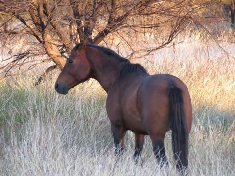 Today we came to Daly Waters and on the way we saw Brumby horses on the road. We sat down for a bit after we set up. We went for a swim in the pool after that. It was cold. We went to the pub for tea. Mum and Dad had barra and beef on the BBQ that was on. Tara and I had nuggets and chips. There was a show on that night. It was sort of a music and joke thing. The pub is a historic pub and it has been there since 1930. Inside the pub there were lots of undies and things hanging on the walls with things written on them. There was an airport there that was used in WWII and before as an international airport with flights coming in from Singapore, Perth and Queensland.