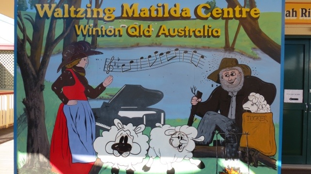 Today we went to have a look at some dinosaur foot prints from a stampede that happened 95 million years ago. There were three sizes the biggest one was a big meat eating dinosaur foot print. They found out that the big dinosaur went down for a drink at the water near mud flats that used to be there. It then went away. then a lot of littler ones came down for a drink. They then ran away because the big one was coming but one didn’t make it away. The foot prints are covered over in a big special building to keep them well. Next we went to the Matilda center. First we watched a little light and sound show of the waltzing Matilda story. We also had a look at the museum that had lots of old things in it. We then drove to Longreach. When we got there we set up and had dinner.