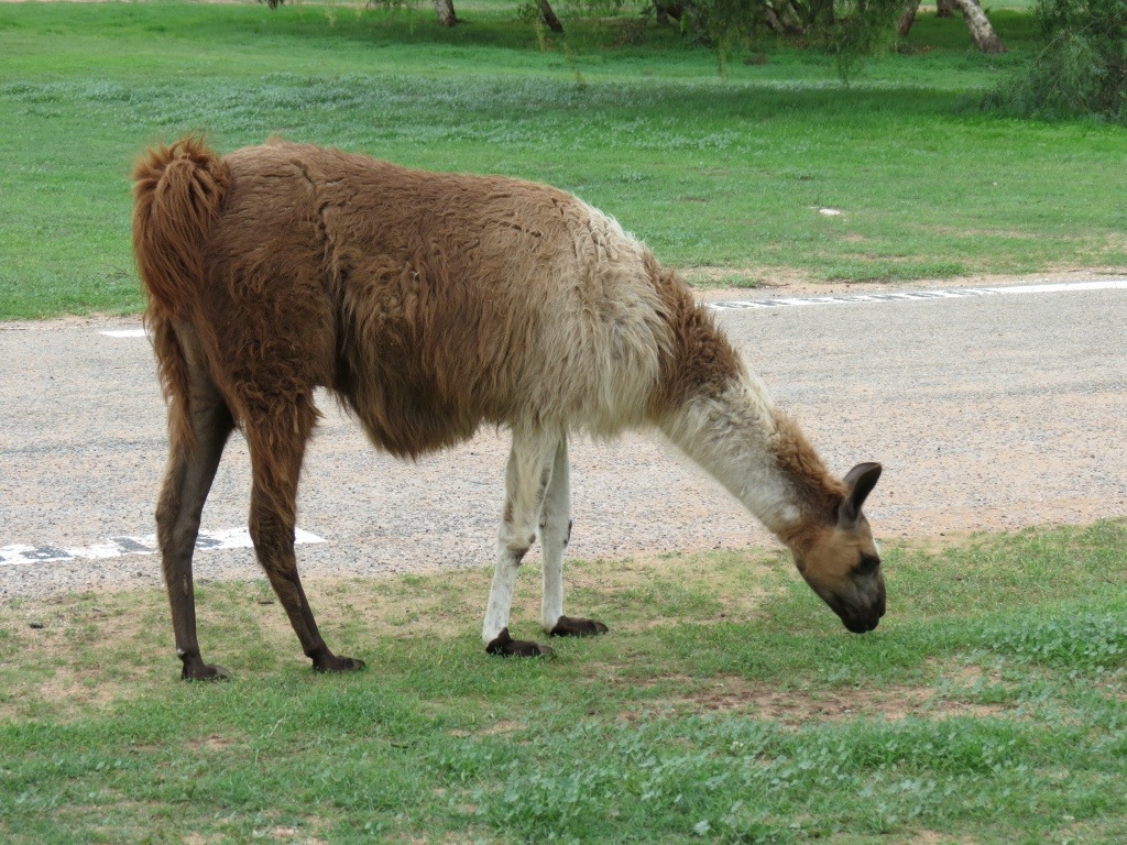 We saw a strange animal that looked like a alpaca crossed with a horse. We looked it up on the Internet and we think it might be a Guanaco which it strange because we also found out there is only one breeder left in Australia so we don’t know how or why there was one there.