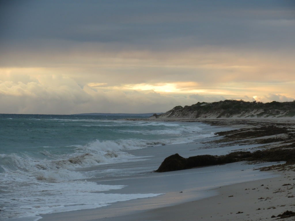 We stopped at the beach at Dongara for to make our lunch. It was a very nice view. We saw a seagull carry a puffer fish on to the sand and drop it there. It was lying on the ground, and then we watched the water come up and it swam away quickly.