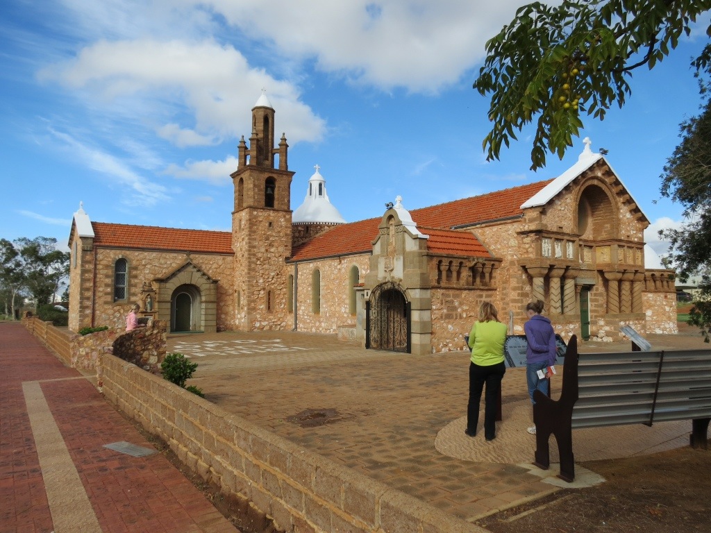 After lunch we went on a small walk around the town, following the Monsignor Hawes trail that ended at a lovely old church. The church was actually designed and partly built by Hawes himself, who was a Franciscan Priest (he was an Anglican Priest before he turned to Catholicism). Monsignor Hawes was born in England, and when he was young he showed promise as an artist, which led to him studying architecture in London around 1900. We found his story to be overwhelmingly fascinating, which is why I cannot recount it all here. But here are a few things that he achieved in his life: He owned and breed race horses, which led to him actually riding one in a race when a jockey was not available, he came second; He designed many of the churches and other Catholic buildings all around the world, and even in Werribee, Victoria. His crowning achievement in this area was the Cathedral in Geraldton. He designed it, helped build it, and purchased most things for it! It took 22 years to complete. Before coming to Australia he was a missionary in the Bahamas, and in his life, he travelled to many other places around the world. Despite designing many fine buildings, when he was a Parish Priest in Mullewa he was content to live in a simple hut, until the Bishop insisted that he should build a proper Priest house; He also designed his own cave attached to a church in the Bahamas where he was to to be buried, he also gave detailed instructions on how his body was to be laid out.