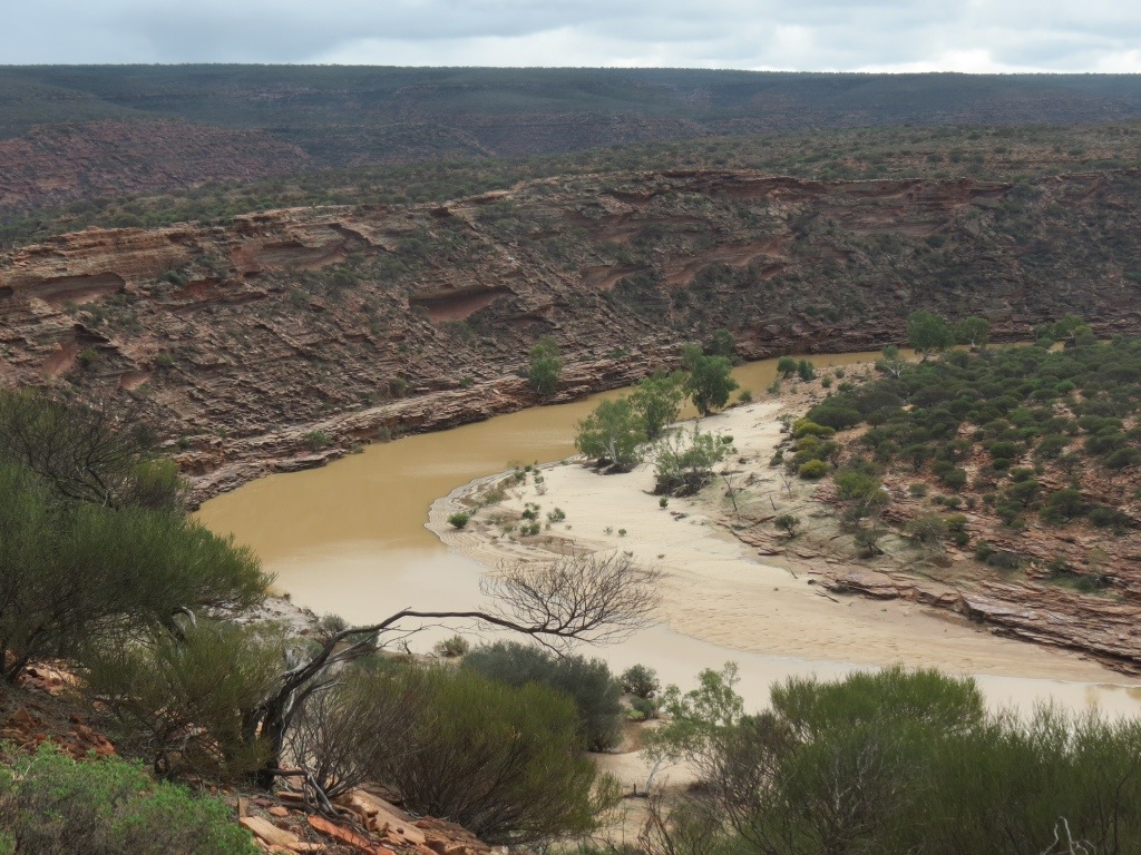 After breakfast we headed off to go on a walk. The walk was situated about 30km out of Kalbarri. The walk went along the Murchison River. It was a very nice walk, that went for about 9km. It took us 3.5 hours to complete, because some parts were quite steep and rocky. There was one part that was actually a little bit scary, we had to crawl along some rock that was right above the water! We also saw a very cute Wallaroo!