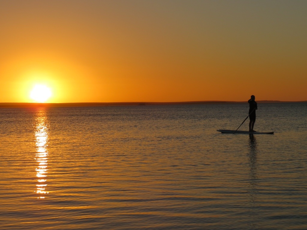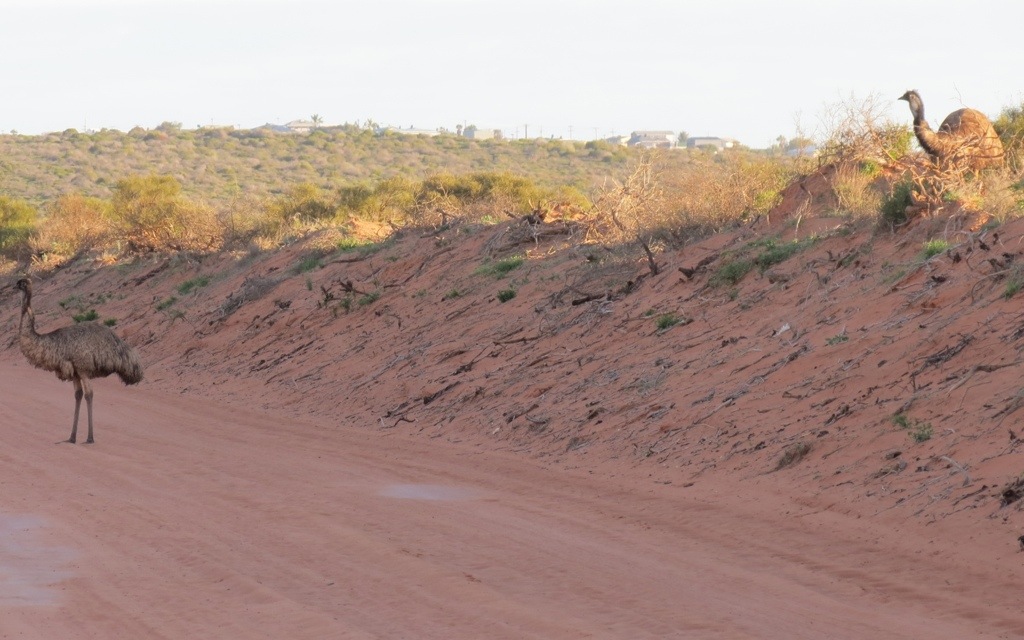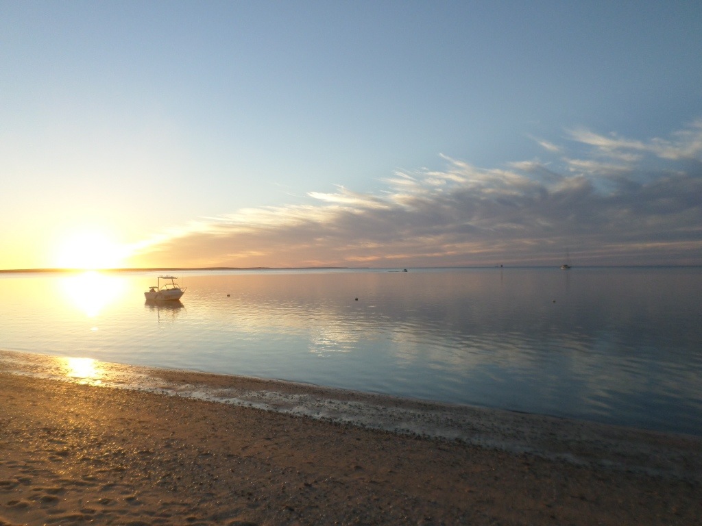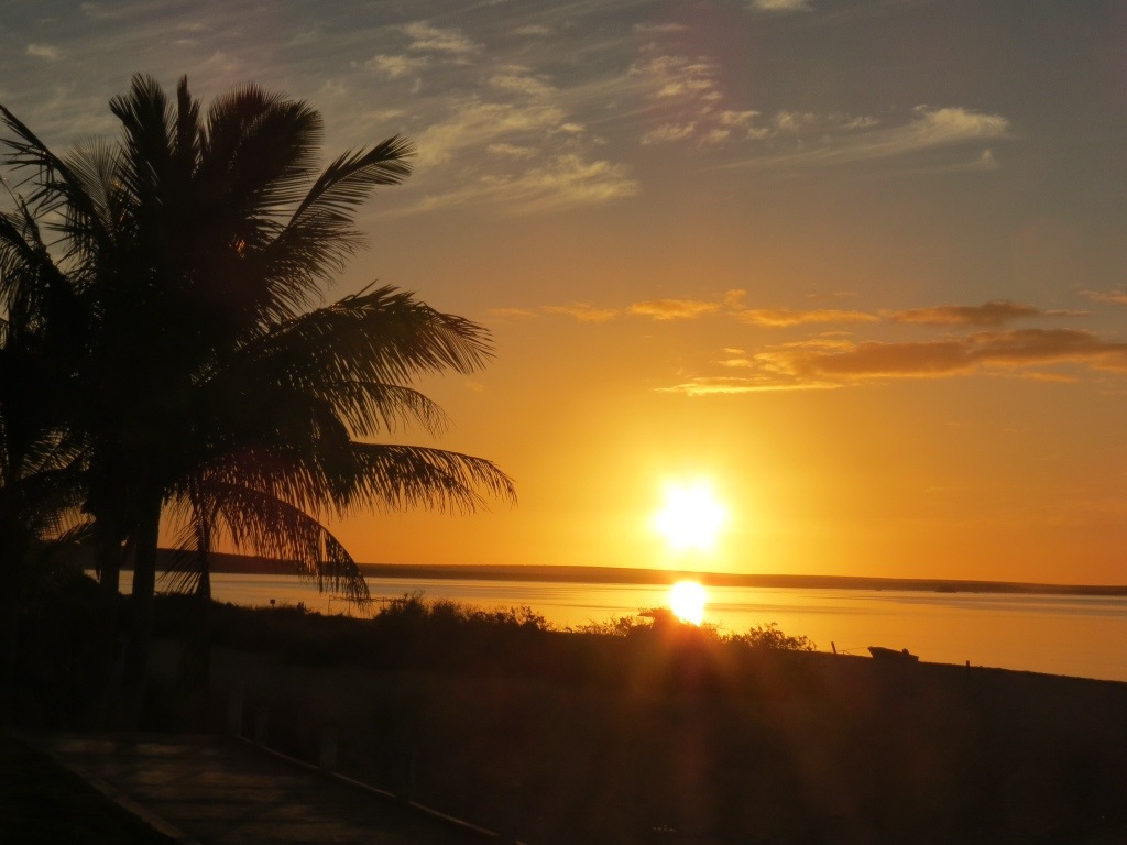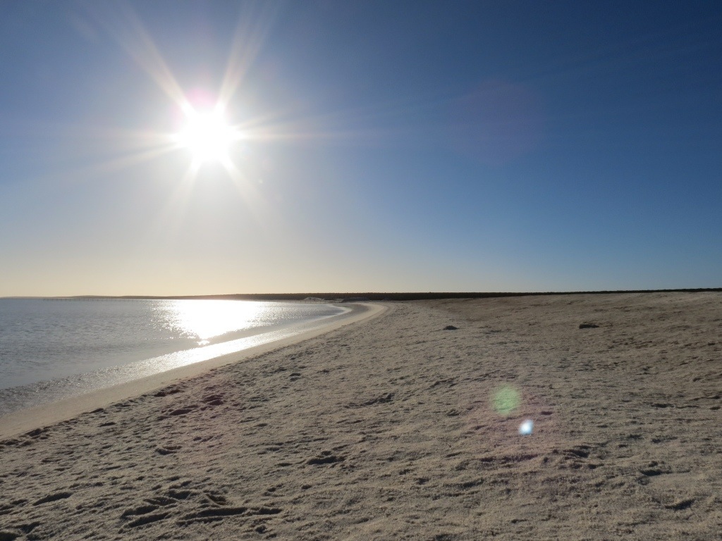 We left early to get a few hours of driving done before breakfast. We had breakfast after 3 hours of driving, we stopped at a cafe along the way, in the middle of nowhere, called “The Red Car Cafe” near the Billabong Roadhouse. We had a surprisingly very tasty cooked breakfast then finished the drive to Monkey Mia. We got there and set up before having a look at the beach. Dad, Tara and I waded in a fair way, we saw lot of little fish (3 different kinds) I even saw a crab! We had a lemonade at the restaurant in the caravan park while we watched the sun set and we also saw some dolphins. We noticed that the water was so still you could only just see the line of the horizon. We had a great day. Tess