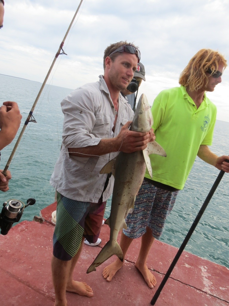This is the Pearl Farm. It is quite fascinating how its just a building in the middle of the water! It is quite an intricate and involved process that produces the black pearls. It takes seven years in total to grow the coloured pearls. While we were at the pearl farm, the people there caught a small shark, we think that they were going to eat it for their lunch!