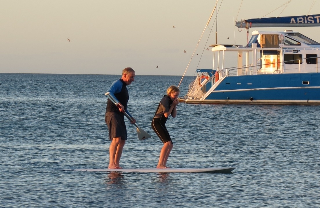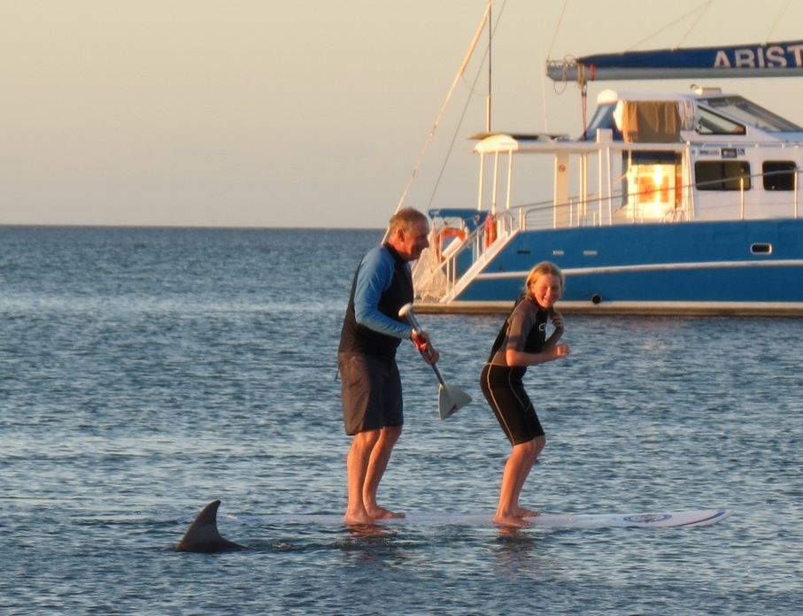 First we went to see the dolphin feeding again, there was more than last time but they took longer to come in. We went to the Ocean Park Aquarium to have a look at the sharks and fish. When we got back we hired some stand up paddle boards and had a go. This is when the amazing thing happened. Dad and I were on a paddle board and we saw two Bottle Nose dolphins swimming towards us. They swam right under our board. We thought they might knock the board over but they didn’t, we fell off just after that any way. I got back on fast because I had just seen a stingray. We had a great day.