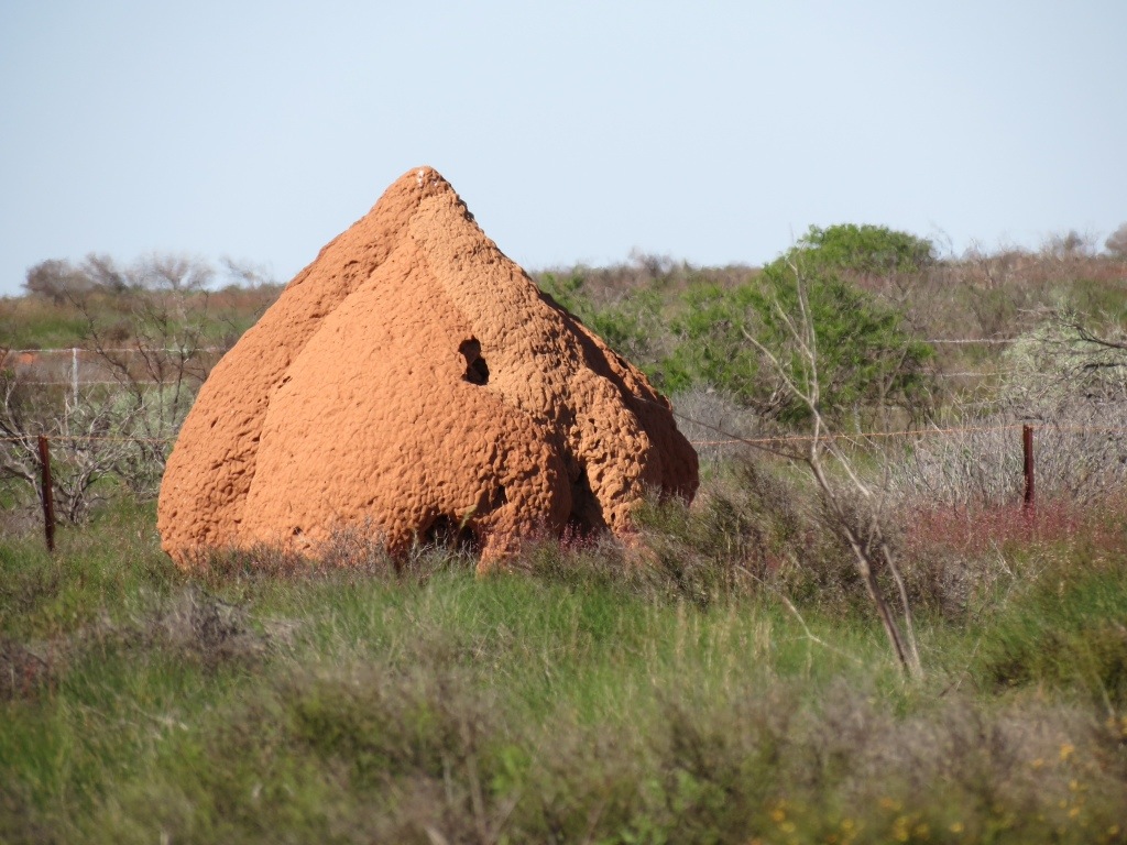 We drove to Coral Bay and on the way we crossed the Tropic of Capricorn. We also stopped at a road house were some people drove off without paying for their petrol. The shopkeeper tried to get the number plate but the car stirred up all the dust so he couldn’t see it. There were fat red anthills on the way, that were different to the tall yellow ones we saw in the NT last trip. We arrived at our camp site, set up and went to the beach to do some snorkelling on Ningaloo Reef. We saw lots of fish as well as a sting ray. We went for a walk to look at the town then came back and had dinner.The weather was warmer and even mum got in the water!