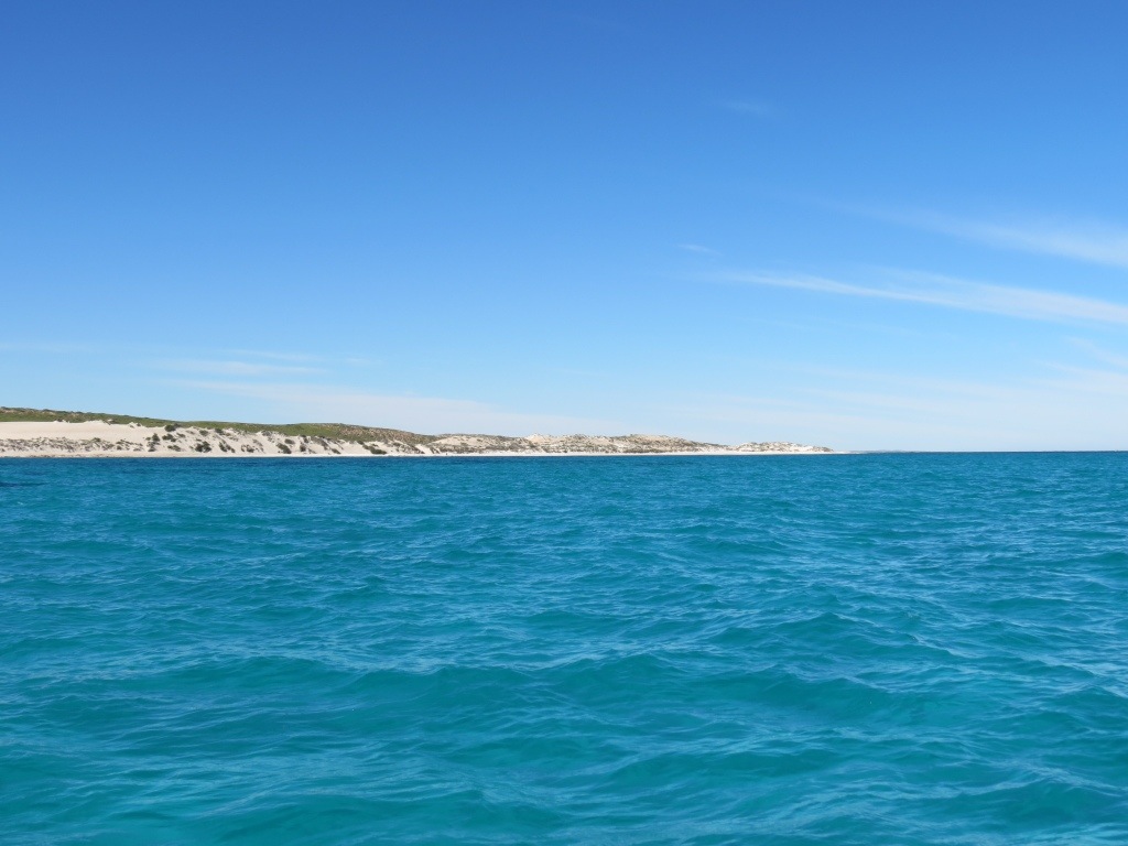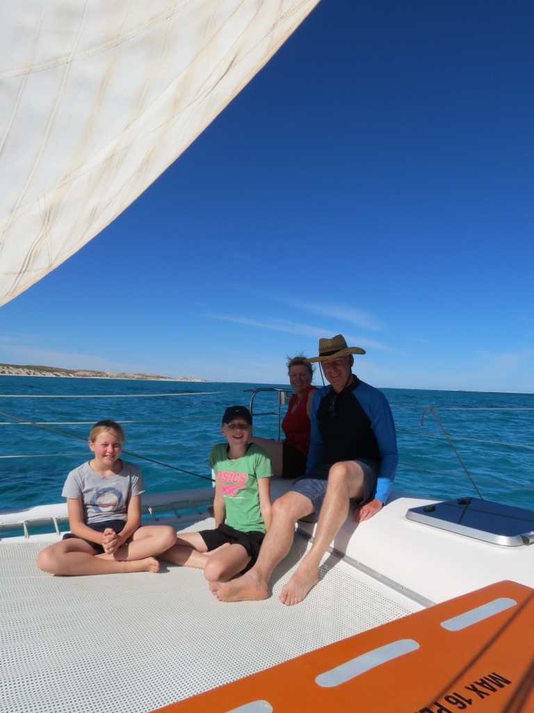 We had a quiet, lazy morning, before tootling off down the street to embark on a catamaran tour. There were only two other people on the tour, so we were very lucky because they can sometimes have up to thirty people! The boat had some nets at the front, which we were able to sit on, like the boat at Monkey Mia. The weather today was just splendid! The sun was shining, the breeze was minimal and there was not a cloud to be seen! Although it was good when the breeze picked up a little, because the boat engine was able to be turned off, and we were able to just sail!