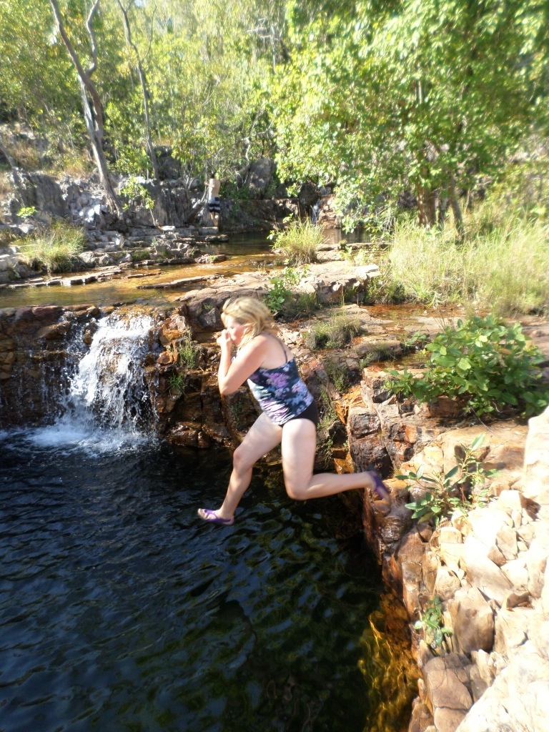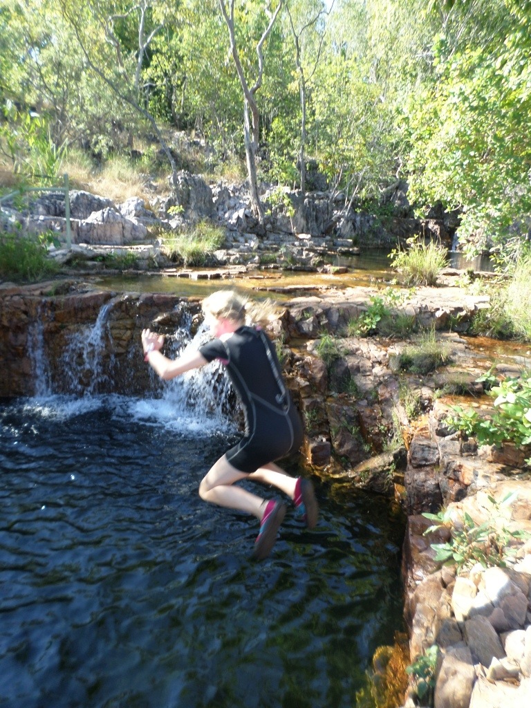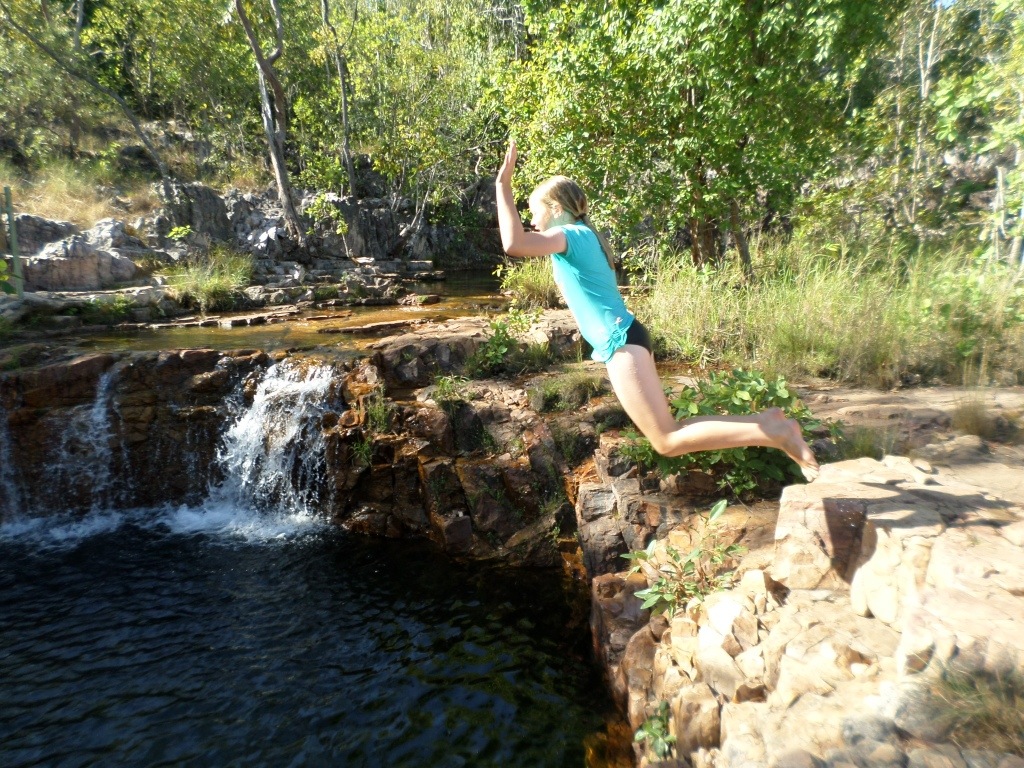 This morning Dad went for an early morning run to Wangi falls. We drove there to meet him for a refreshing swim. We were the only ones other then one other person. It was a lovely swim. We went back and lit the fire to do some cooking. We made damper and a cake. After a while we went for another swim in Tjaetaba again. We all did some dive bombs off the small ledge including Mum! It was really fun