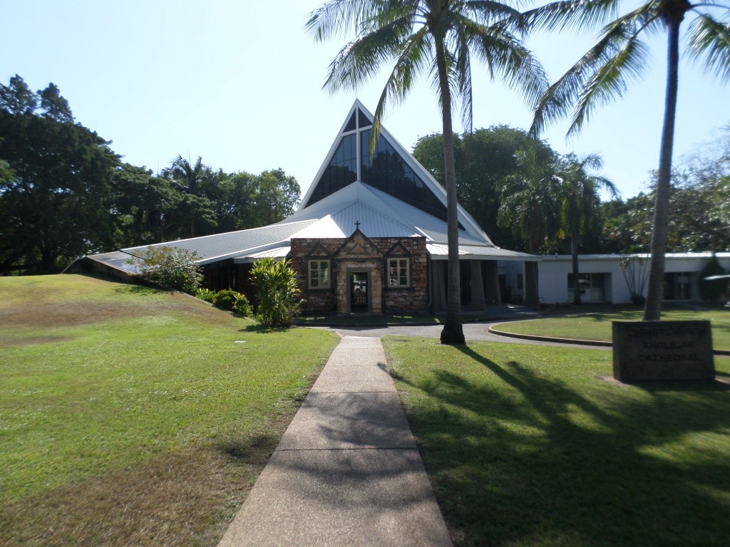 Cyclone Tracey knocked down 90% of the original Cathedral, leaving only the front entrance standing. Today, they have built a new modern Cathedral, incorporating the original entrance. It has been designed to blend into the surrounding park.