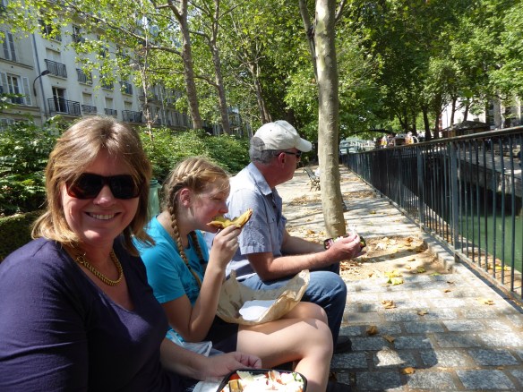 ‘Twas a rather early start today, as we had to drop the car off and then get to the airport to fly to Paris! It was a very short flight. When we arrived, we made our way to the hotel. Paris is so hot and humid! After we had checked in, we walked down the road and bought some very nice lunch from a boulangerie! We caught le metro towards the Eiffel Tower, then walked the rest of the way along the River Seine. We saw the locks on the fence and had dinner just before we got to the Eiffel Tower. The queues at the tower we very long. We had to wait for about an hour and a half, but the views from the top were definitely worth it!! We got a wee bit lost on the way home, and didn’t get home until after midnight! We were all quite tired!