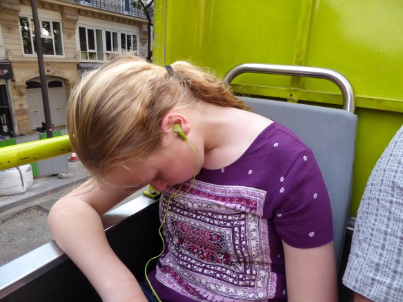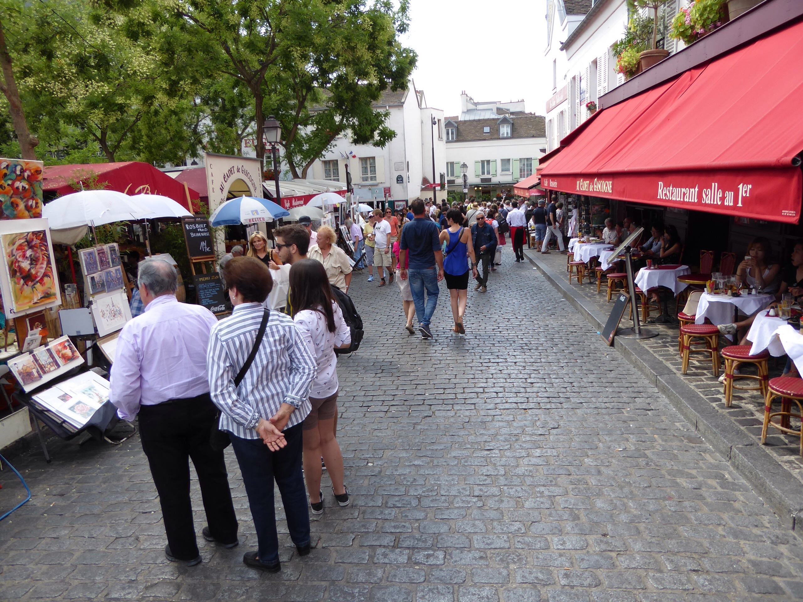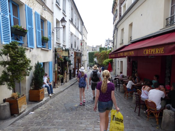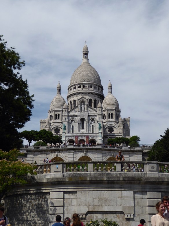 First up, we caught the metro to Les Halles, where we walked around a route from the guide book. Les Halles is a very big food area. We walked down lots of nice alley ways, and past lots of yummy shops! We had a yummy late breakfast at a boulangerie. Then it was on to the metro to make our way out to Montmartre, a very artistic part of the city. There were so many people there! We saw the Sacré-Cœur Basilica on top of the Montmartre hill. We walked around an area with lots of artists selling paintings and other art works. We walked around for a while, then hopped on the hop-on-hop-off bus where we spent the remainder of the afternoon because our feet were so sore from all that walking! We have definitely slipped into the Parisian style of having a late dinner, we didn’t eat until about 10pm! It was another lovely and warm day today, but just when we had finished dinner, it started absolutely pouring with rain!