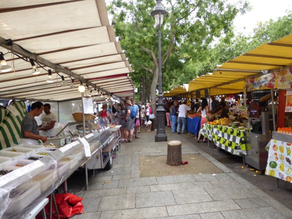 We caught le metro to Bastille this morning. Nearly all of the shops were closed, so we walked around the empty streets for a bit before going to a market. It was interesting seeing a French market. There were lots of fruit and vegetable stalls, cheese stalls and bread stalls. We bought some yummy food for lunch. It was really fun doing all our shopping at the market. Then we walked to a nice park and ate and ate!