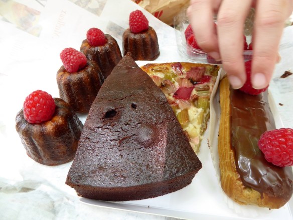 Rhubarb tart, chocolate cake and an eclair – yumm!