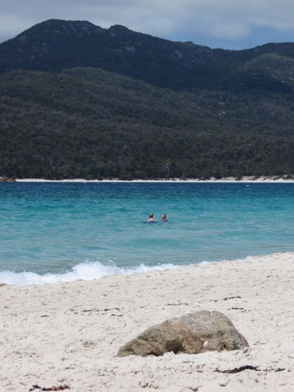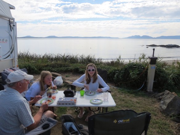 After a lazy morning dolphin spotting we drove out to The Pub In The Paddock for lunch. The pub was built in 1880 and is famous for its ‘beer drinking pig’! It was a lovely meal, although very filling! However, somehow, we all still had just enough room in our tummies for a bit of cheese tasting down the road at Pyengana cheese. Some of the cheeses had been aged for 32 months! We drove around for a bit after that, visiting a few short walks and lookout areas. From a place called The Gardens (given the name by an explorers wife for its many native flowers, that we didn’t see) you can see the whole Bay Of Fires! Then, we had a glorious afternoon at the caravan, just reading and relaxing! Mum made some lovely hamburgers for our tucker.