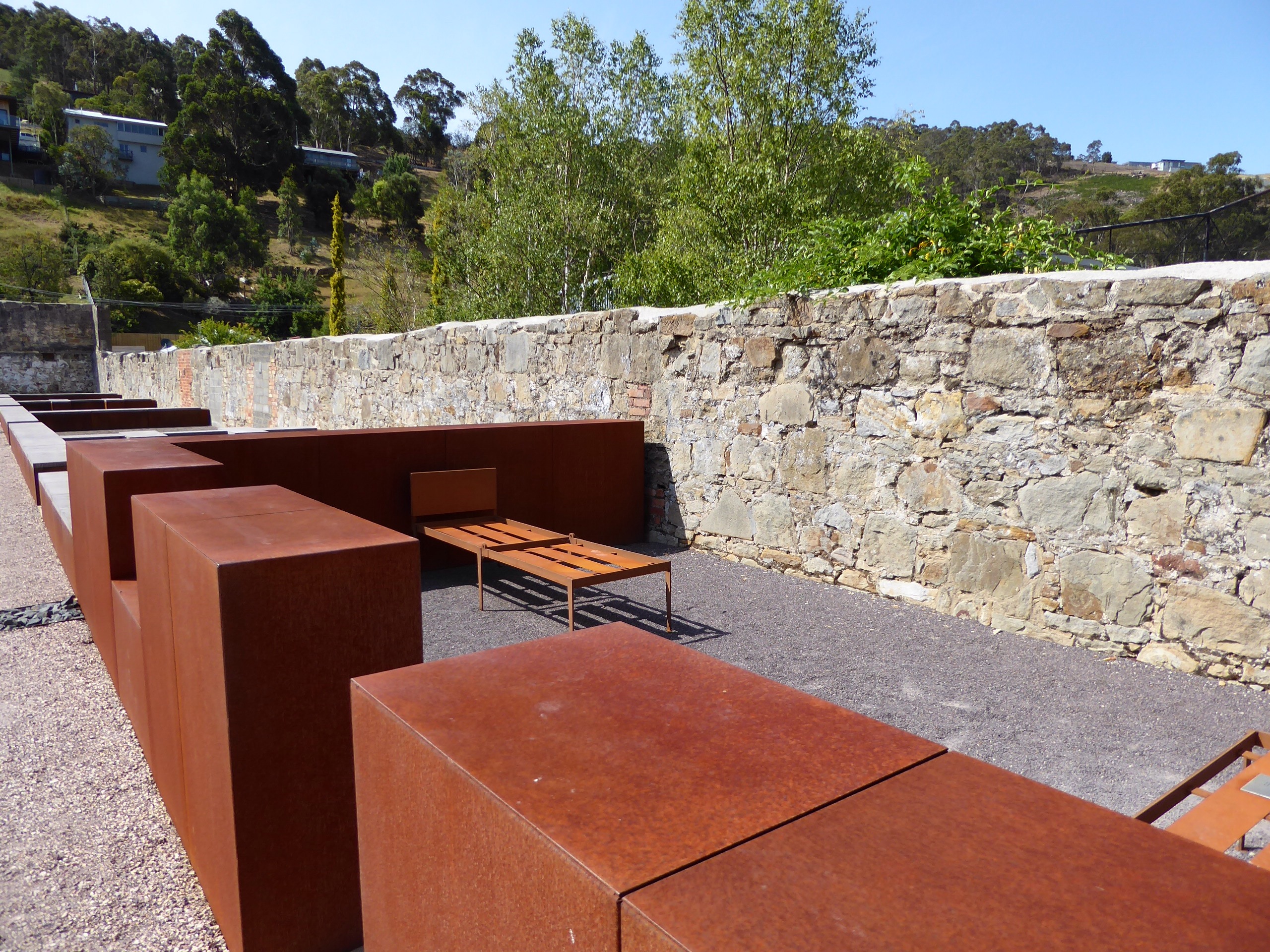 First we went to MONA the museum of old and new art. From Tara, Mum and my point of view it was very …”different”. Dad liked most of it even though he said he couldn’t really understand the meaning of some parts. Tara, Mum and I skimmed through a couple of rooms before heading to the café! Later we went to the wharf and had some very nice fish and chips for lunch before going to the Female Factory. The Female Factory was a convict prison for women. Other than one, all of the buildings are no longer there although the big stone walls separating each yard are still there. Each yard had a purpose. One section was for solitary confinement, this was also broken up into 2 sections one was the completely dark no noise one which was for a more severe punishment and the other part was cells that had a little light, but while in them, the convicts had to pull apart big pieces of rope with their hands. Their hands would eventually become raw, blisterd and infected.