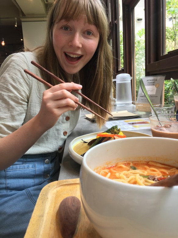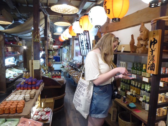 Off to see the Arashiyama Bamboo Grove and then the Kinkaku-Ji Temple. We walked through the lovely Japanese gardens at the temple and then found a tiny restaurant down a side street and had some Japanese currys for lunch – very cute place that could only seat 10 on the floor – this was our first seated on the floor restaurant.