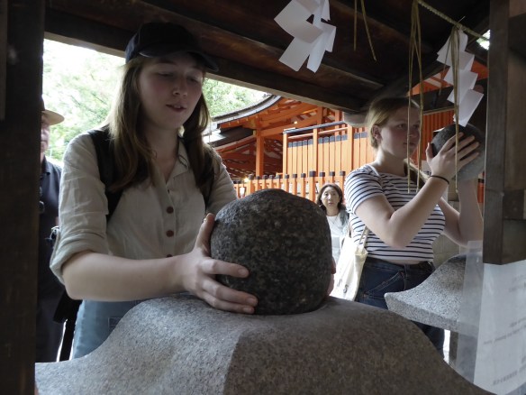This was at the shrine. Apparently if you guess the weight of the rock then lift it, if it is lighter than you think your wish will come true!