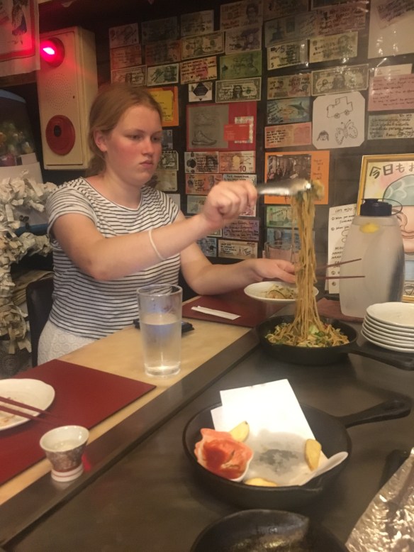 Sight seeing is hard work when it is so hot and humid! Breakfast was just around the corner at a whole foods cafe where we enjoyed Granola. Muffins and biscuits. Tess had a traditional Japanese breakfast which had rice, soup and pickled things that we dont know what they were as well as a small salad. Toast and Jam is so much simpler!