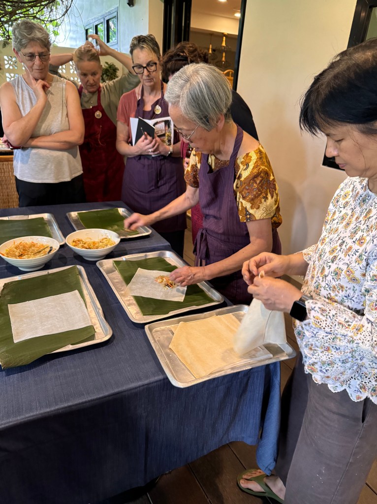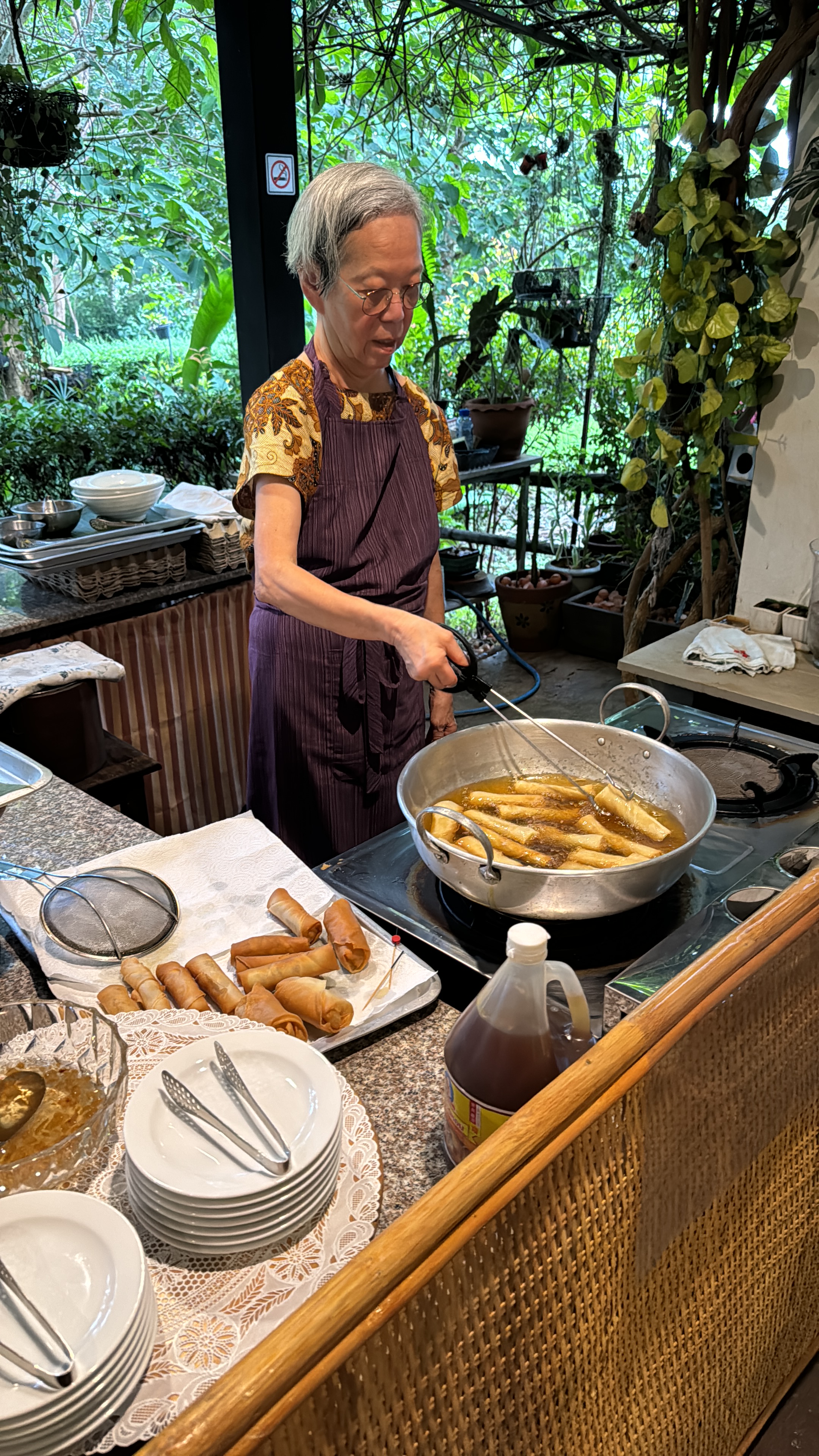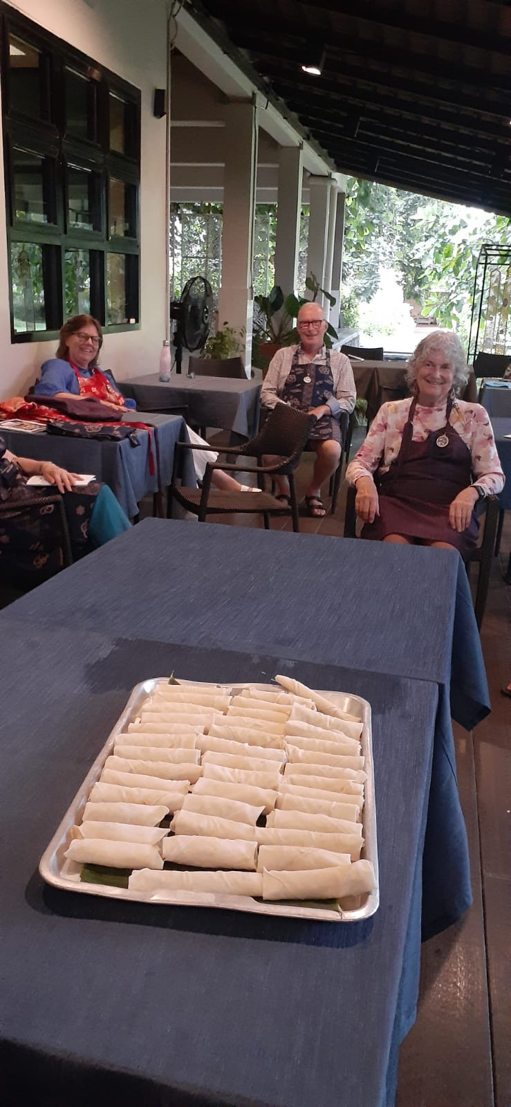 Lazy day by the pool and then Duang had organised a quick cooking class of spring rolls for us before dinner. We had the spring rolls for appetisers then dinner was brought in from one of the restaurants we were supposed to visit but couldn’t because of the flooding.