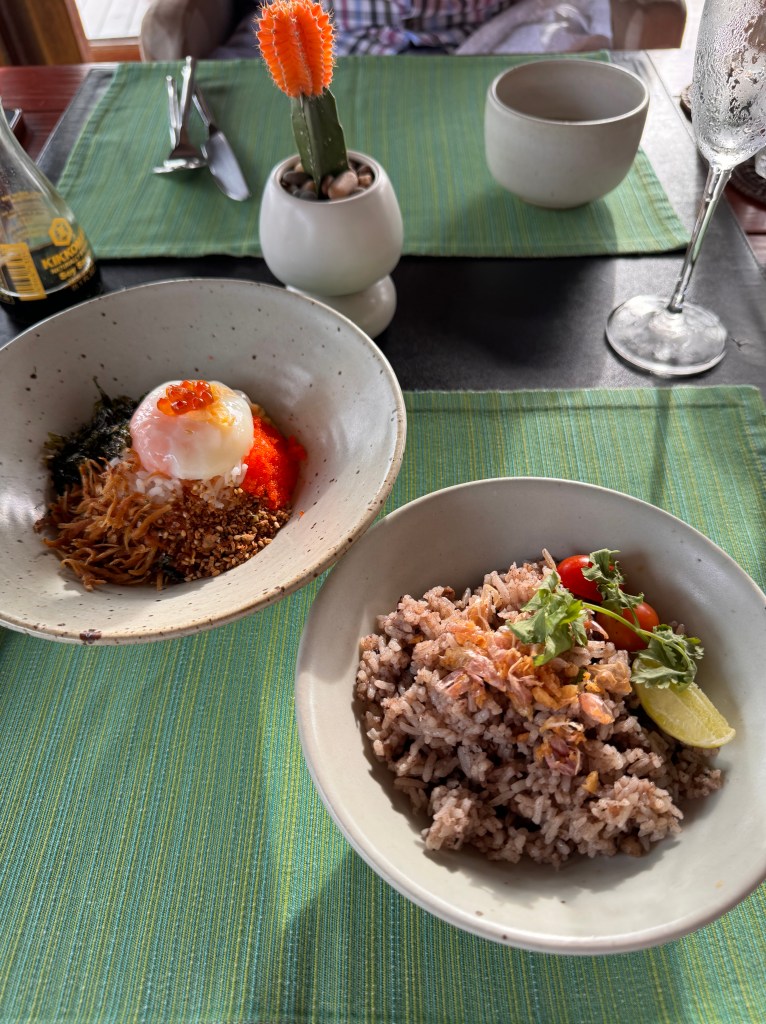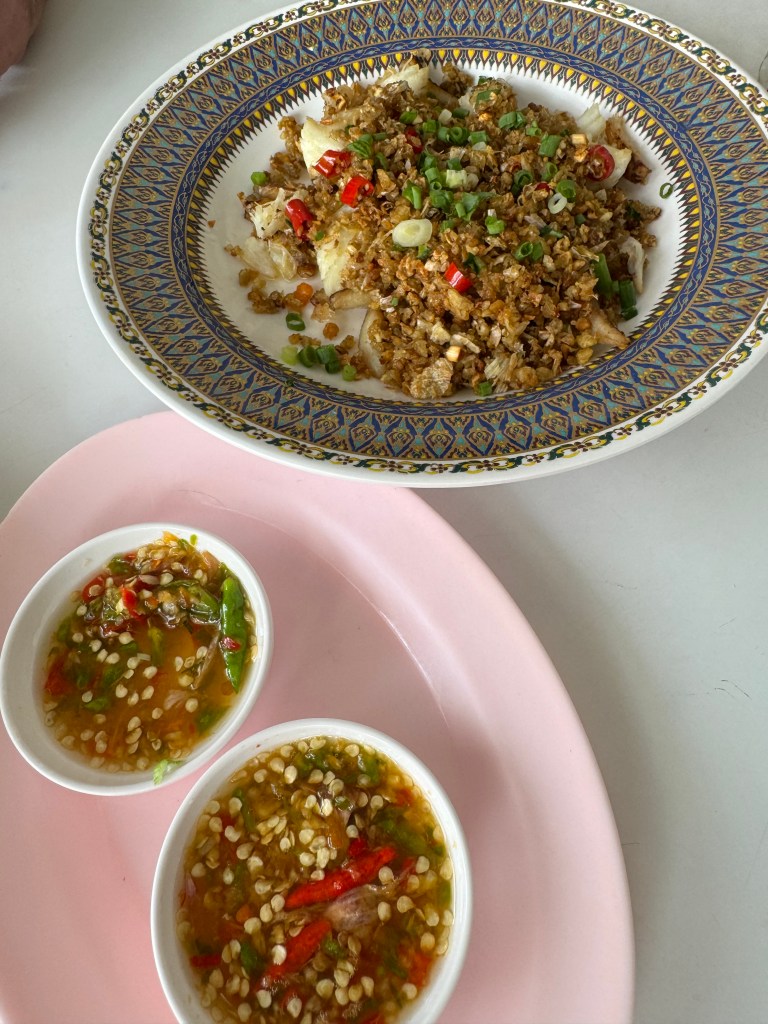 Fried rice and an egg for breakfast. The owner of the resort, Khun Tae has taught herself to make sourdough bread for the Australian Tourists so we could have toast as well.