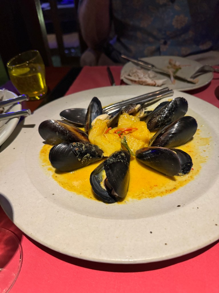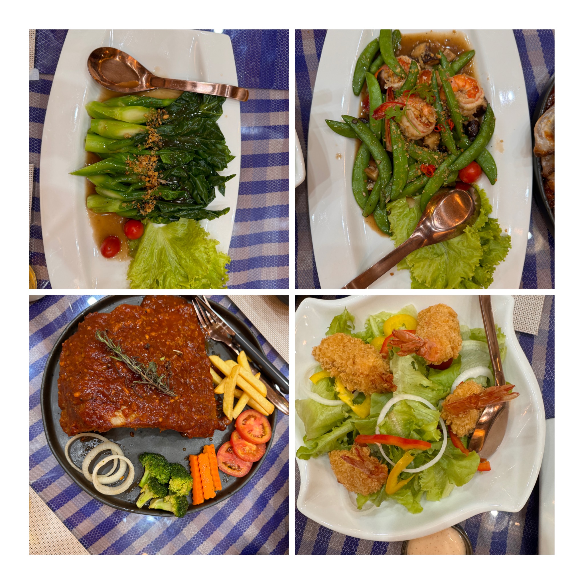 Day 3 Started with another delicious 3 course breakfast with dessert being a crispy salmon and sticky rice dish in banana leaf. It was sweet and delicious. Then a hot 2.5km walk to check out Bluport Shopping Centre. They had massive goldfish swimming in a big pond inside the centre. We jumped in a TukTuk and went to Koti Restaurant for lunch. It has been going since 1932. It’s not flash looking but the food was nice. most eating places are not airconditioned but they do have lots of fans. A Tuk Tuk back to Let’s Sea Resort for a swim, pre dinner drinks and dinner!