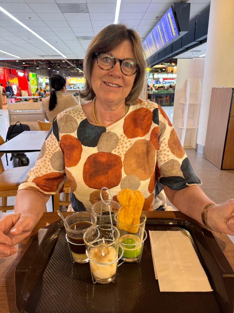 Breakfast at the airport before our flight to Nan. Some of us were more adventurous that others!!