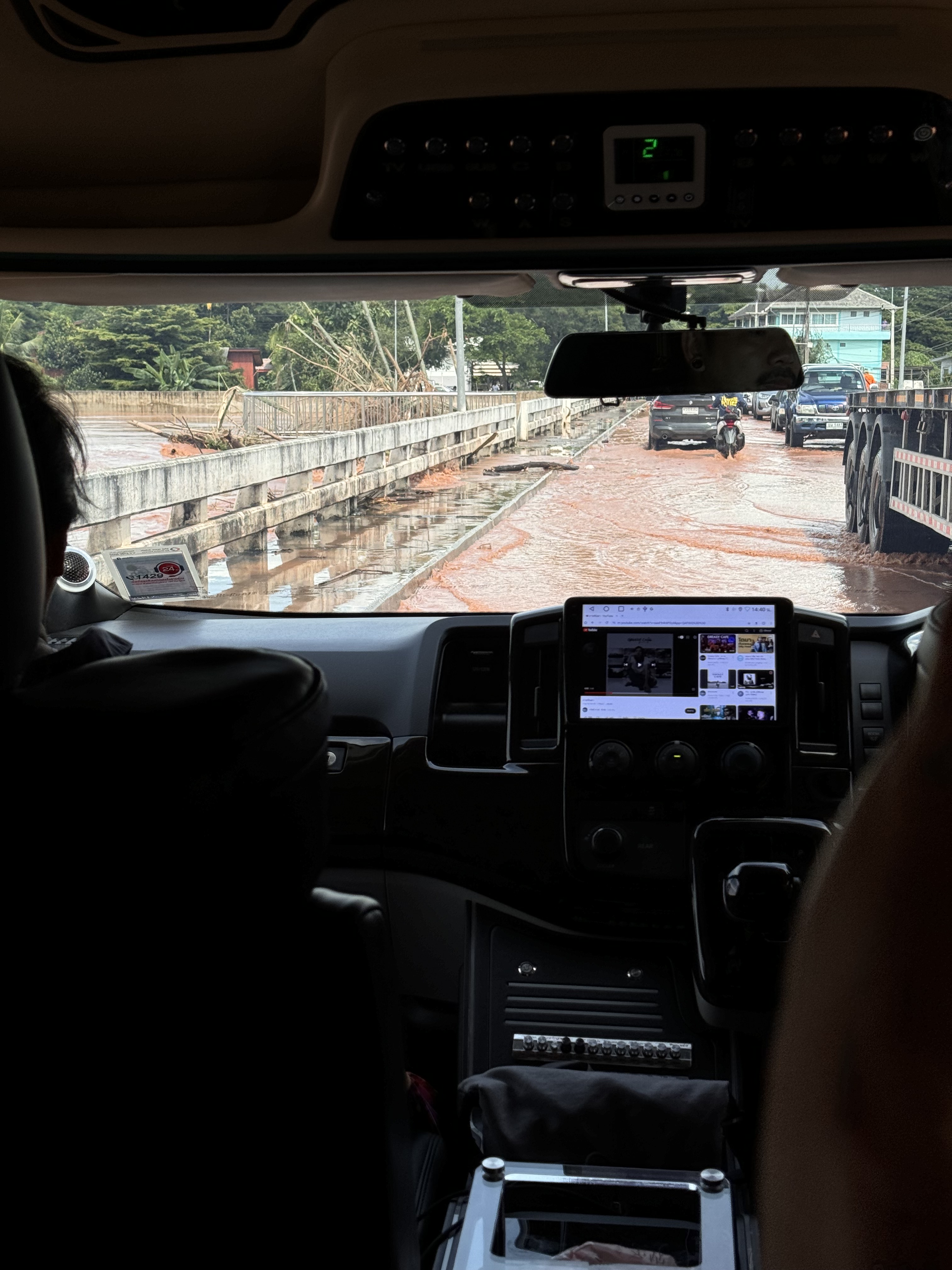 We are just staying around the resort today to stay out of the way of people trying to help. Looks like we might be here for 5 days at least. The water levels have reduced a little but most of Nan is still flooded. Duang still cannot get to her house.