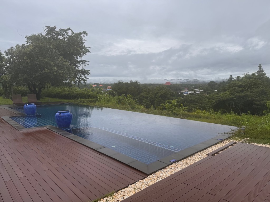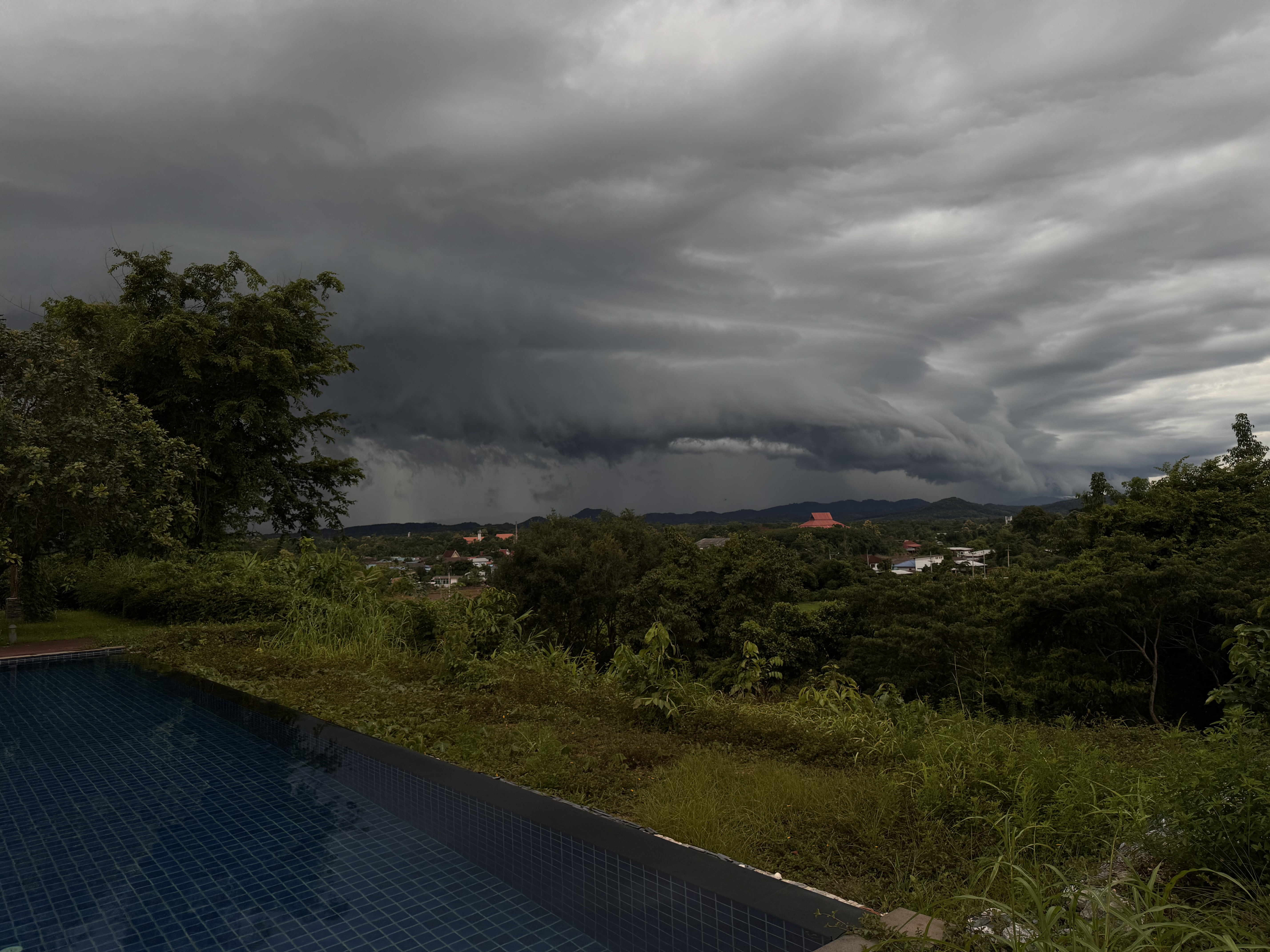 A qilck drink stop at Ban Tai Lue on the way back before a swim in the pool as the storm rolled in across the mountains.