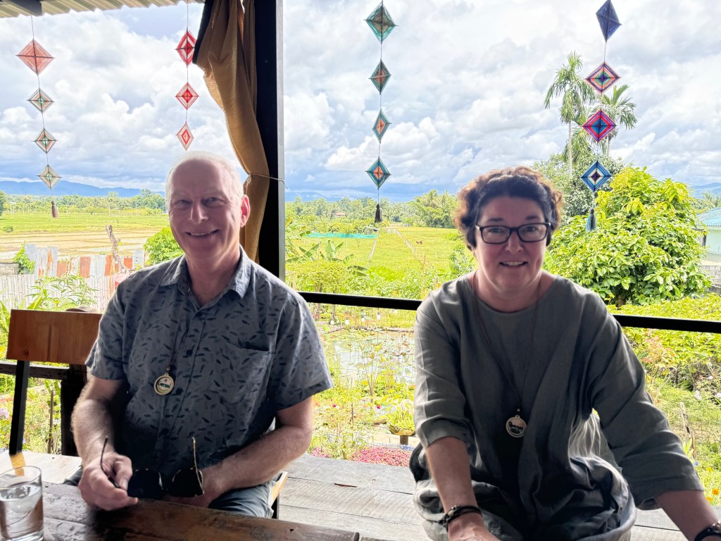 After Breakfast we went to on of the local primary schools to present them with our donations. They lost everything in the floods. It was the school that the resort owner and her children went to. We were very happy to be able to help a little whilst we were here. We still have not been able to get to see Duang’s house – it is damaged from all the flooding and needs some repairs so unfortunately we wont be doing any cooking classes there. Also food is in short supply as many of the market stall holders are busy cleaning up their houses. Duang is having to improvise, however we certainly do not feel like we are suffering or disadvantaged in any way! We feel that we have been eating like Kings whilst the rest of the town is working very hard to clean everything up. Then we went on to Duang’s Nephew’s coffee shop called Huan Hung Tor for a coffee and Gerard even managed to find carrot cake!