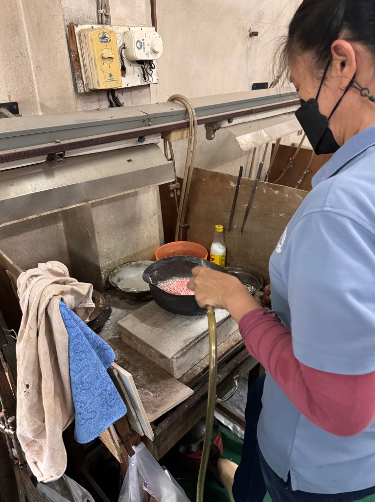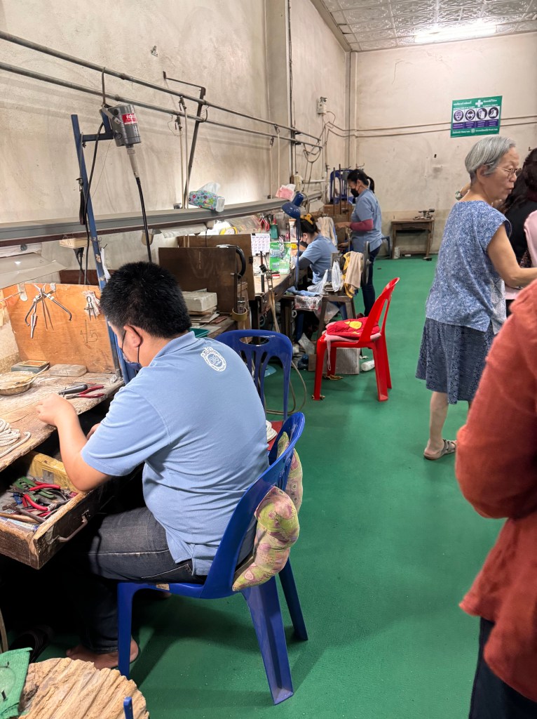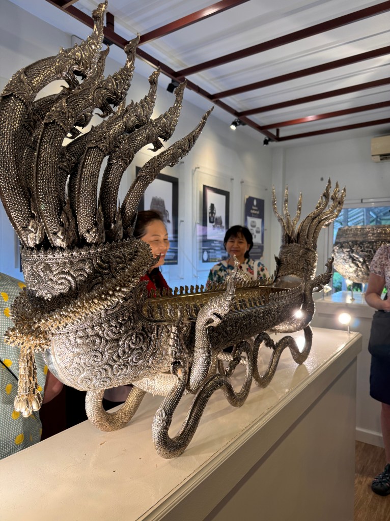 After lunch we stopped at a pop-up roadside Batik clothing stall run by a real character! He is famous in Thailand for playing male and female roles in movies. He now designs batik clothing. Next we were off to a silver workshop. Students are sponsored to come and learn the traditional trade and stay for at least three years. They create some amazingly intricate silver works.