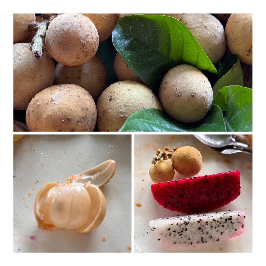 Lunch was enjoyed at Bo Suak. Fish Chili Paste with vegies, Basil omelet (these were yummy), Spicey Chicken Soup, and a pile of fresh Mangosteens!