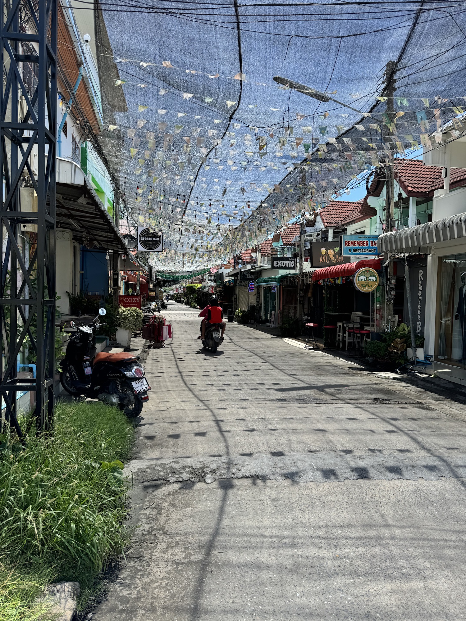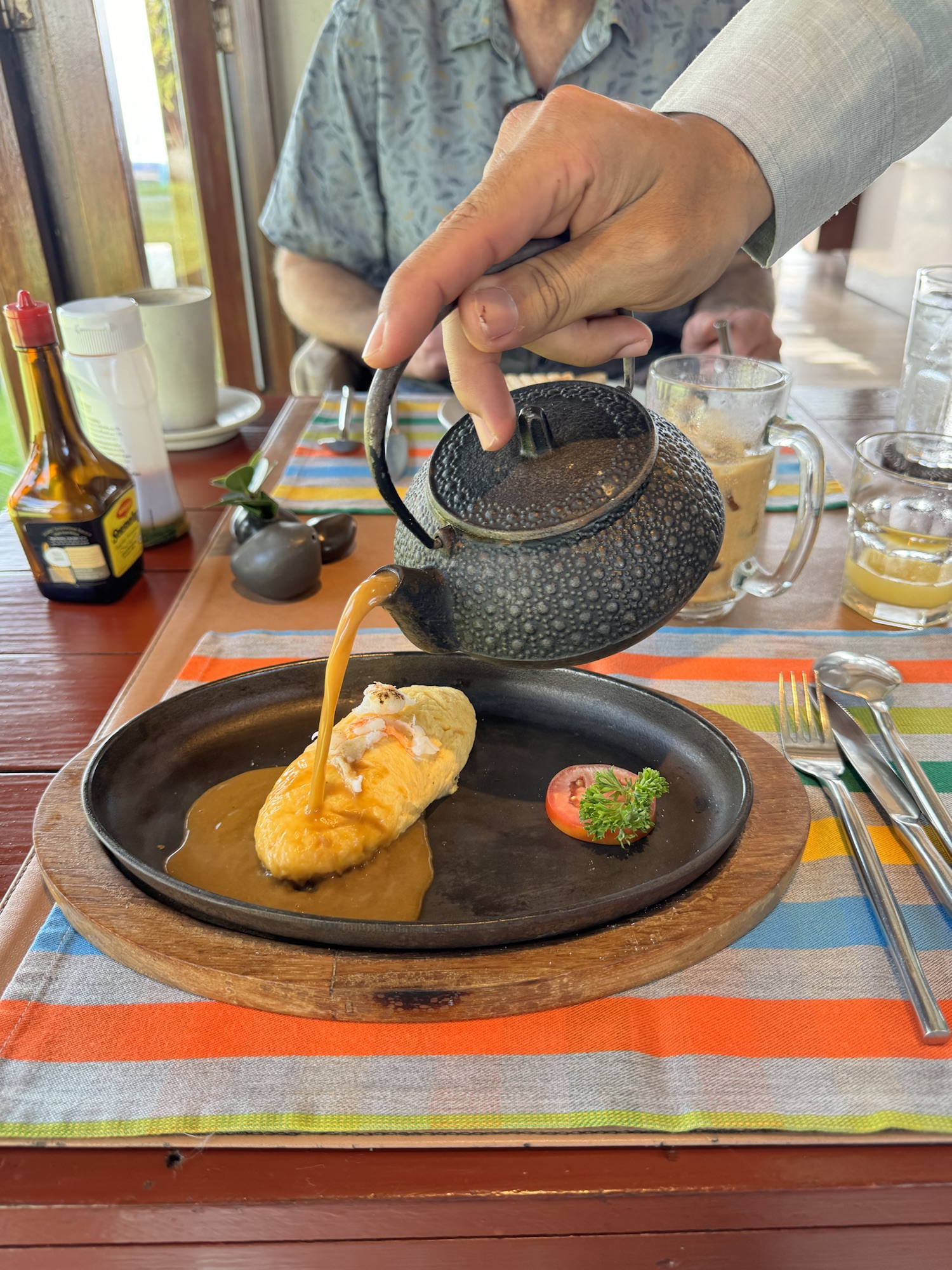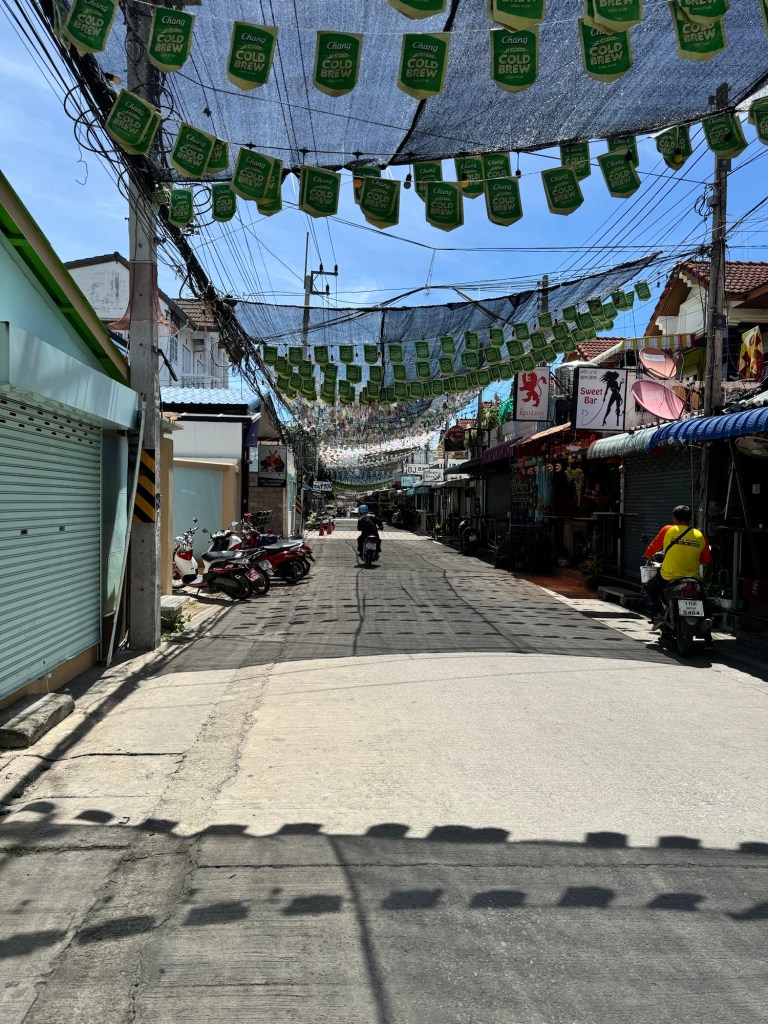A qilck drink stop at Ban Tai Lue on the way back before a swim in the pool as the storm rolled in across the mountains.