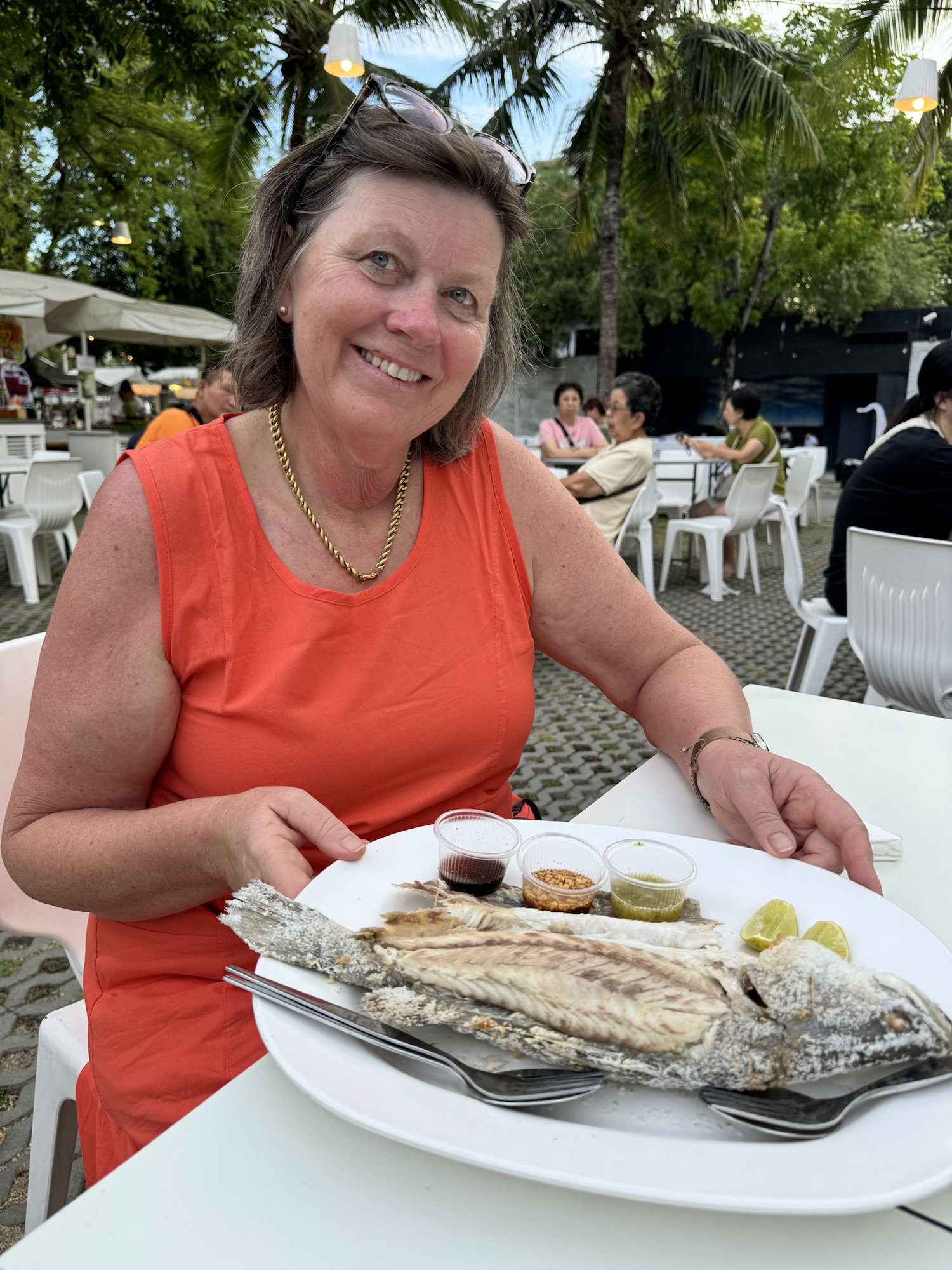 After our walk around the art gallery we were off to our lunch spot. A very small cafe in Northern Nan. We started with fried Chicken Wings and then had Pad See Ew noodles. Followed by fresh fruit grown in their garden.