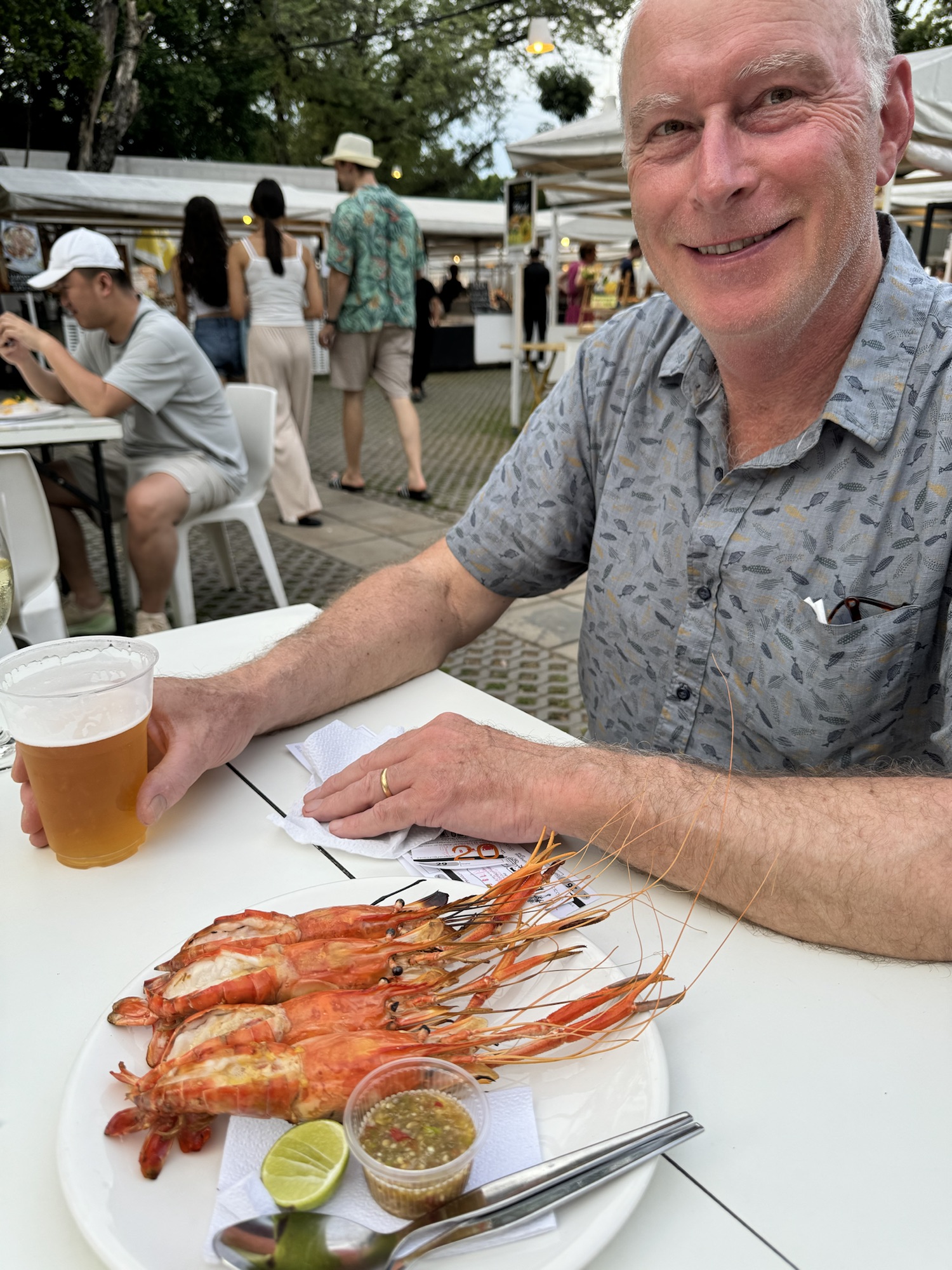 After lunch we stopped at a pop-up roadside Batik clothing stall run by a real character! He is famous in Thailand for playing male and female roles in movies. He now designs batik clothing. Next we were off to a silver workshop. Students are sponsored to come and learn the traditional trade and stay for at least three years. They create some amazingly intricate silver works.